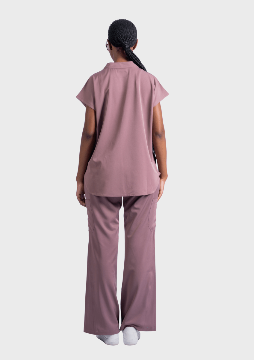 The Ava Set brings together two of our most sophisticated silhouettes the Ava Contour Scrub Top and the Ava High Waist Wide-Leg Scrub Pants, forming a coordinated look defined by clean lines, modern structure, and effortless movement.